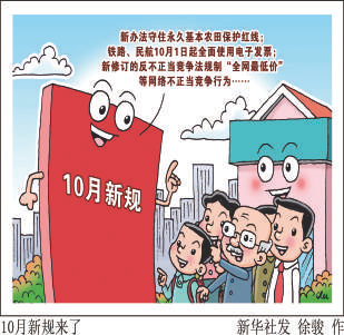 新办法守住永久基本农田保护红线;铁路、民航10月1日起全面使用电子发票;新修订的反不正当竞争法规制“全网最低价”等网络不正当竞争行为……10月新规来了,一起来看!