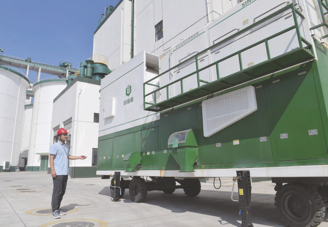 近年来,中储粮成都青白江仓储有限责任公司与中储粮成都储藏研究院有限公司等粮食储藏科技研发机构密切合作,应用智能扦检平台、AI虫情监测系统、移动式组合清理设备等储粮技术、设备,大幅提升储存效率和质量。图为技术人员介绍移动式组合清理设备。 新华社记者 刘坤 摄