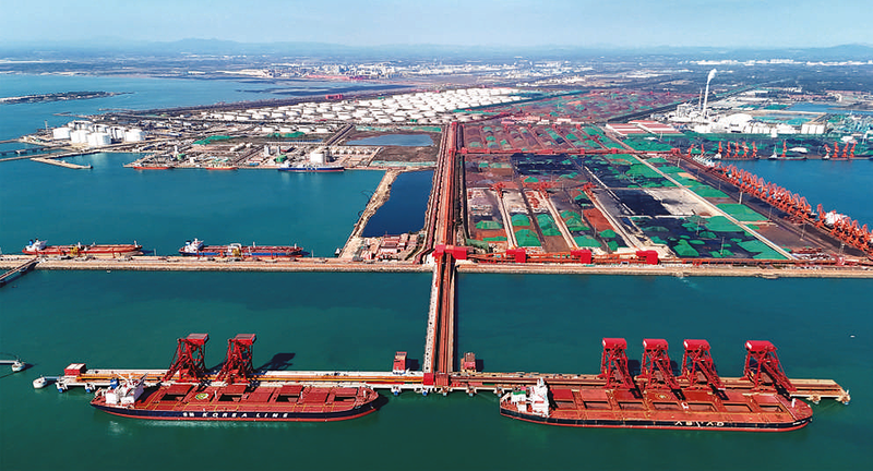 在山东青岛拍摄的山东港口青岛港第二座40万吨矿石码头(无人机照片)。10月27日,山东港口青岛港第二座40万吨矿石码头投产。这也是全国首个40万吨干散货数智码头,集成5G、人工智能、云计算等前沿技术,率先开发应用智能化的干散货码头通用操作系统,将实现全流程生产经营过程的实时监测、智慧决策和数字化感知。 新华社发 张进刚 摄