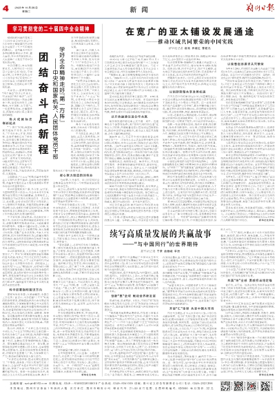 独行快,众行远。经济全球化为世界各国发展带来了前所未有的机遇,中国经济也从中受益。四中全会提出,推动贸易创新发展,拓展双向投资合作空间,高质量共建“一带一路”。世界普遍期待,在中国式现代化的新征程上,各国与中国携手共赢繁荣未来。