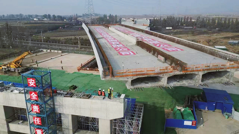 本报讯(记者 刘希军 聂慧丽李媛)国道336朔州段改扩建工程再次刷新进度条,其跨越北同蒲铁路转体桥于10月25日成功转体。重达1.2万吨的梁体完成80度顺时针转动并精准对接,标志着该项目关键性工程施工取得突破,攻克了全线技术难度最高的转体环节,为后续施工及全线通车奠定坚实基础。