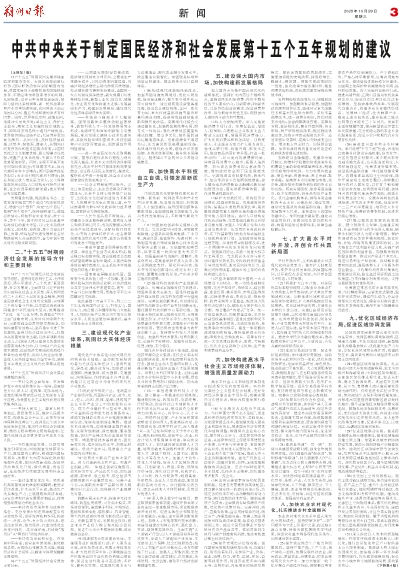 中共中央关于制定国民经济和社会发展第十五个五年规划的建议