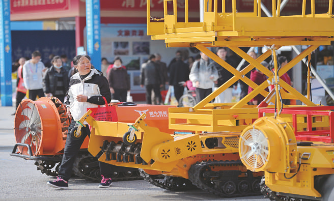 10月26日,参观者在第32届杨凌农高会上了解渭南君创飞科技有限公司的履带果园管理机。近日,第32届中国杨凌农业高新科技成果博览会在陕西杨凌举行。博览会通过农业机器人比赛、智慧农机装备展等形式,汇聚来自全国各地的科研团队和创新企业,集中展示农业机器人领域的最新成果,这种“赛展结合”的模式,让杨凌农高会成为智慧农业创新成果的展示窗口和推广平台。 新华社记者 李一博 摄
