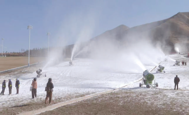 山西广武国际滑雪场场地负责人孙风国介绍,造雪的前提条件必须达到0摄氏度以下。现在温度适宜的情况下,可以24小时不间断,前期对外开放的是初级道、中级道,雪必须达到40厘米左右,才能对外开放,确保安全。