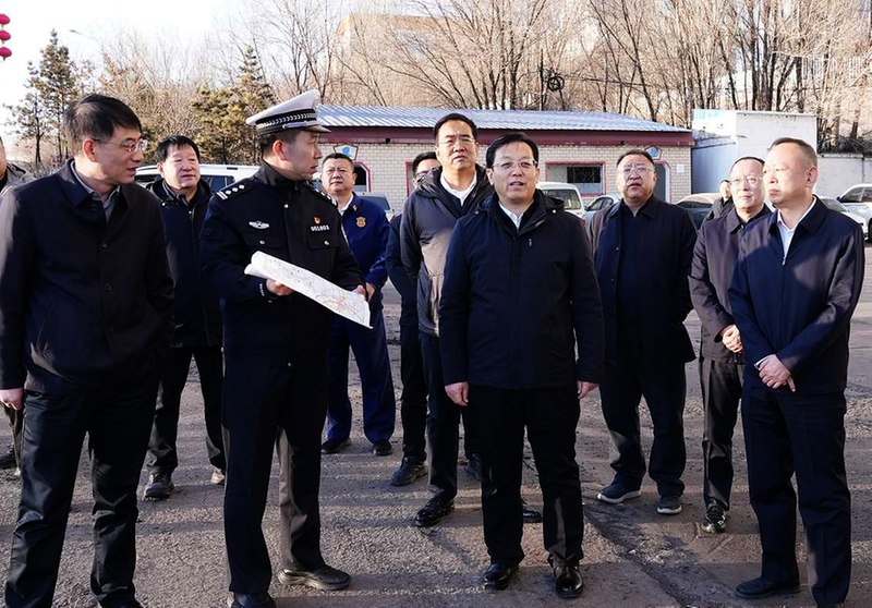 11月25日,市委书记王帅红深入平鲁区,实地督导检查煤矿、道路交通、建筑施工、森林防火等重点领域安全生产工作。图为王帅红在国道336线金三角至平鲁矸石电厂段,实地查看道路状况,详细了解路段事故特点及治理措施。