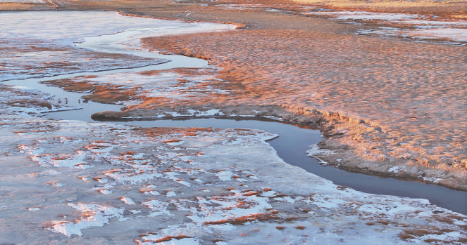 这是12月1日在甘肃省阿克塞哈萨克族自治县阿勒腾乡哈尔腾村拍摄的大哈尔腾河冬景(无人机照片)。初冬时节,各地景色在季节的更替中呈现出别样风韵。 新华社发 高宏善 摄