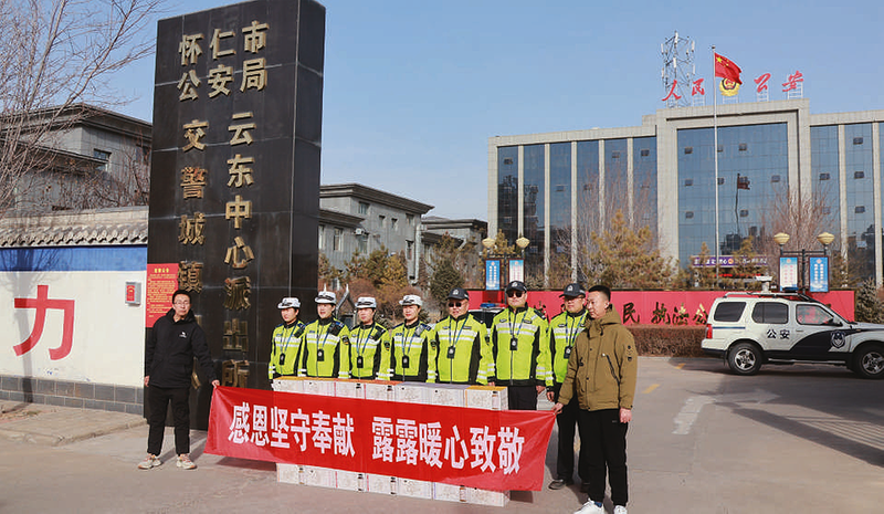 近日,承德露露股份公司怀仁代理商在怀仁市公安局交通管理大队城镇中队开展“感恩坚守奉献 露露暖心致敬”慰问活动,为在寒风里执勤的一线民警和辅警送上总价值2万余元的慰问品,用实际行动传递温暖。