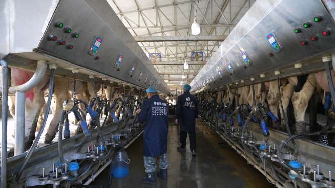 目前牧场奶牛存栏量达600多头,其中成乳牛300多头,我们全面采用全混合日粮饲喂、智能环控等标准化养殖技术,年产优质的生鲜乳近4000吨;这些鲜奶已经与市里乳制品龙头企业签订了长期收购协议,收购价比市场价高出10%,销路稳定且效益可观,奶牛所需饲草全部来自周边的10多个村,每年青贮饲草收购量达4000多吨,既保障了养殖原料供给,也为村民搭建了稳定的增收渠道。