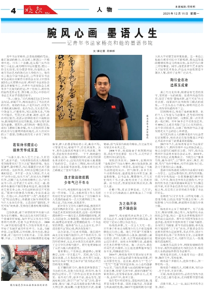 从痴迷书法的少年,到颇有建树的青年书家,再到传道授业的书院创办者,杨亮的人生轨迹始终围绕书法展开。