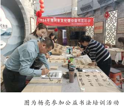 杨亮并未止步于书院教学。为了弘扬文化、陶冶情操、励志育人,发掘传统书法的社会价值,杨亮一直关注并积极组织开展书法公益活动。常年在市图书馆举办公益讲座,连续四年组织策划了长城书画展、全市职工书画展、青年书法临摹展,牵头组织万福迎春“三下乡”活动,并邀请全省书法展来朔举办巡回展等,形式多样、别开生面地传承弘扬了优秀传统文化,让高雅雄健深远的书法艺术,为新时代注入一股蓬勃的清流新风。
