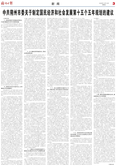 中共朔州市委关于制定国民经济和社会发展第十五个五年规划的建议