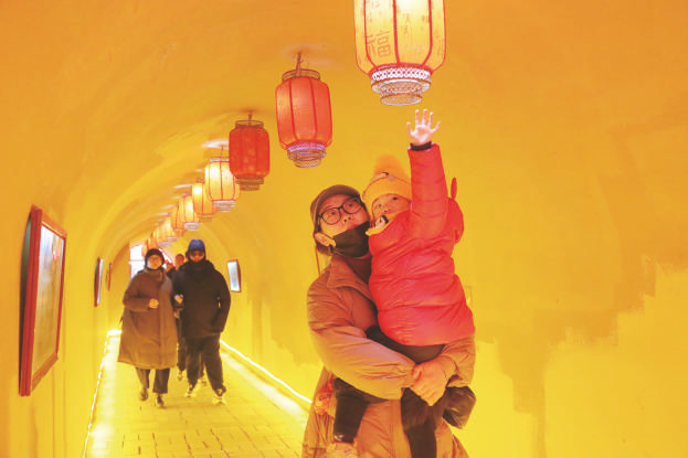 近日,游客在河南省三门峡市陕州区张汴乡北营村地坑院参观游览。