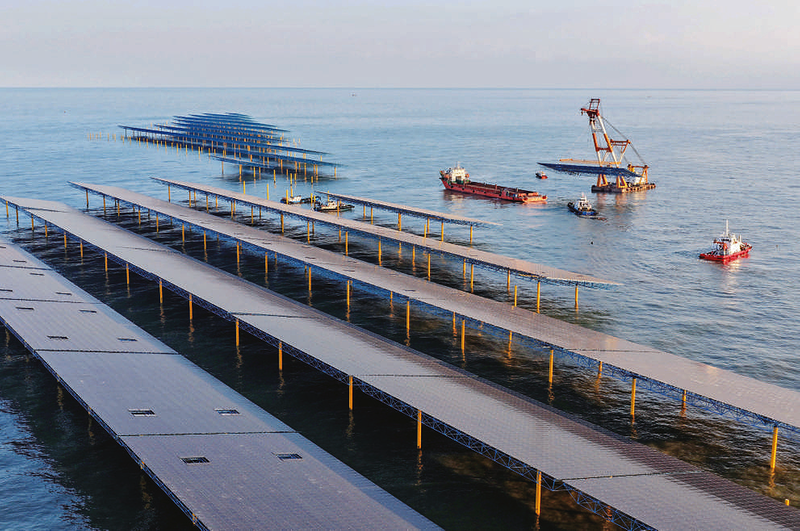 近日,中国华电集团有限公司河北分公司在河北省昌黎县海域投资建设的河北省海上光伏电站试点项目,正在按照节点要求扎实推进。据介绍,该项目装机容量465.6兆瓦,建成并网投运后,将为推动海洋经济高质量发展,落实“双碳”目标注入强劲动能。 新华社记者 杨世尧 摄