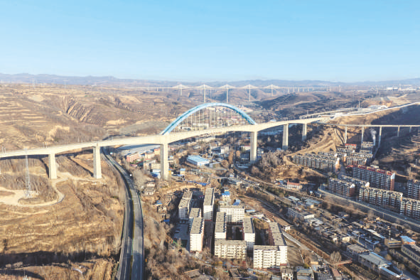 西安至延安高速铁路关键控制性工程王家河特大桥位于陕西省铜川市王益区,是西延高铁全线跨度最大、高度最高的桥梁。桥梁全长1066米,其主跨采用248米连续刚构加拱组合结构,桥面距沟底高达105米,是国内高速铁路无砟轨道桥梁中同类型结构的跨度与高度双项纪录保持者,对保障西延高铁全线贯通具有决定性意义。
