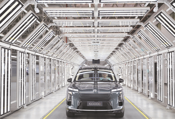 1月6日,在安徽省合肥市新桥智能电动汽车产业园蔚来第二工厂,蔚来第100万台量 产车下线。