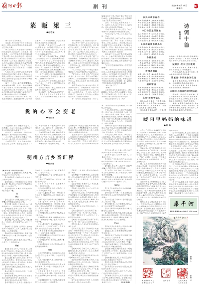 【还】(音含,阳平,下同)①更:人家比我~学哩好哩。②尚且:你~不敢应承哩,我们就越发不敢作声囒。③又,再:你~说个啥哩,人们早就捂住耳朵囒。