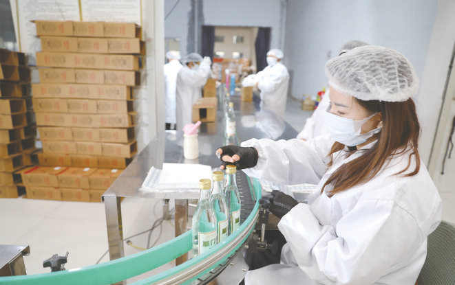 走进朔州经济开发区山西雁门春酿造有限公司的包装车间,淡淡的酒香萦绕鼻尖。车间里一片忙碌,全自动化灌装机、封盖机等现代化设备有序运转,发出规律的声响。