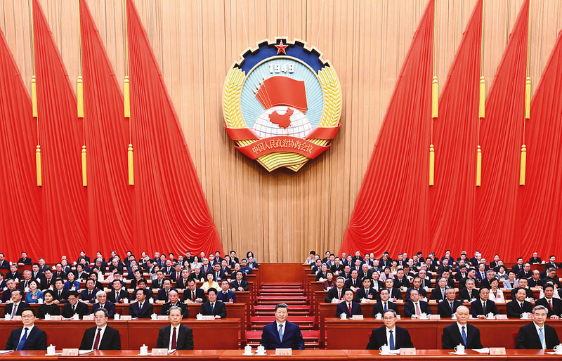 三月的北京,春启华章。人民大会堂大礼堂灯光璀璨,气氛隆重热烈。中国人民政治协商会议会徽悬挂在主席台正中,十面鲜艳的红旗分列两侧。
