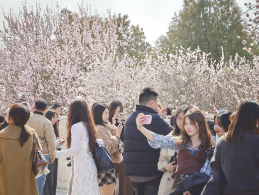 3月15日,游客在北京北海公园踏青赏景。随着天气转暖,北京迎来宜人春光,公园景致如画,吸引市民游客踏青赏景,感受城市生态之美。