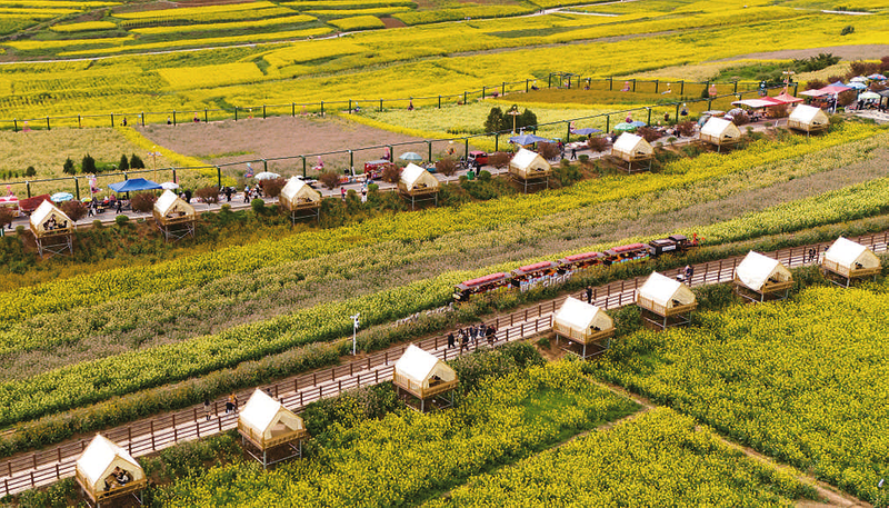 近日,陕西省汉中市百万亩油菜花进入盛花期。以金色油菜花海为媒,汉中市打造油菜花海旅游廊道,推出15条精品赏花线路,融入美食露营、非遗展演、艺术研学等多样化的体验项目,推动“花经济”从单一观光向多元融合转型升级,为当地农文旅深度融合发展注入新动能。 新华社记者 邹竞一 摄