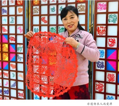 冯爱萍与剪纸的缘分,始于童年的耳濡目染。她生长在雁门关脚下、素有“文化村”美誉的南榆林乡东村,家中亦是书香门第。南榆林一带民间艺术底蕴深厚,“大秧歌”“道情”声名远扬,当地更有“南榆林的狗也会咬道情”的趣说,足见艺术氛围之浓。