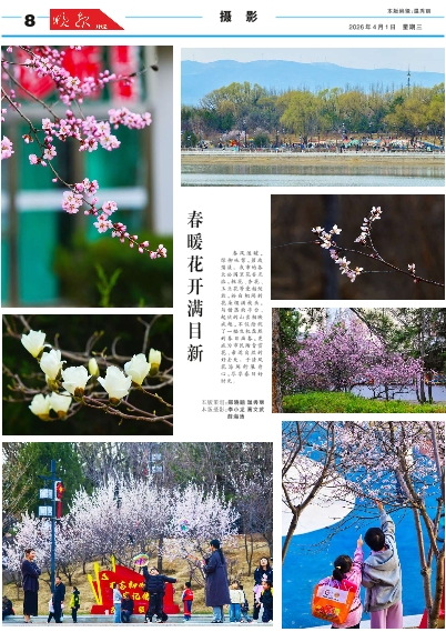 春风送暖,绿柳吐絮,碧波荡漾。我市的各大公园里花香正浓,桃花、杏花、玉兰花等竞相绽放,粉白相间的花朵缀满枝头,与错落的亭台、起伏的山峦相映成趣,不仅绘就了一幅生机盎然的春日画卷,更成为市民踏青赏花、亲近自然的好去处。于清风花海间舒展身心,尽享春日好时光。