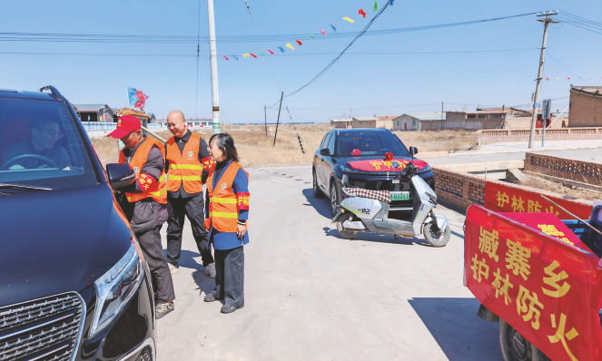春季气温持续回升,森林防火工作步入关键阶段,应县臧寨乡严格落实乡领导包片、乡干部包村、到村工作大学生驻村、村“两委”干部全天在岗不间断巡查的联防联控机制,全方位筑牢森林防火坚固防线,守护好绿水青山。图为清明节假期期间,乡、村干部在对过往车辆进行排查登记,宣传普及森林防火知识。 张建花 摄