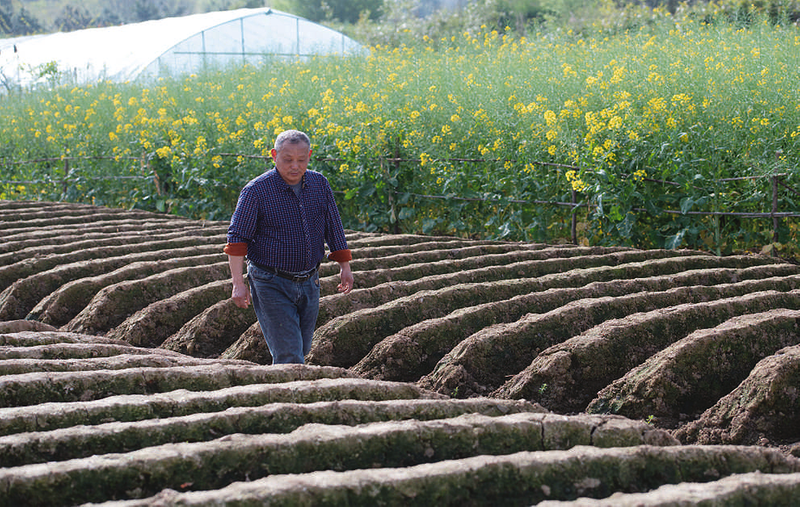 4月5日,在安徽省铜陵市郊区大通镇大院村,农民在姜田里巡看。眼下,在安徽省铜陵市大通镇、天门镇等地,姜农们忙着起垄、种植白姜、施肥、搭建姜棚,田间地头呈现一派忙碌的春耕图景。