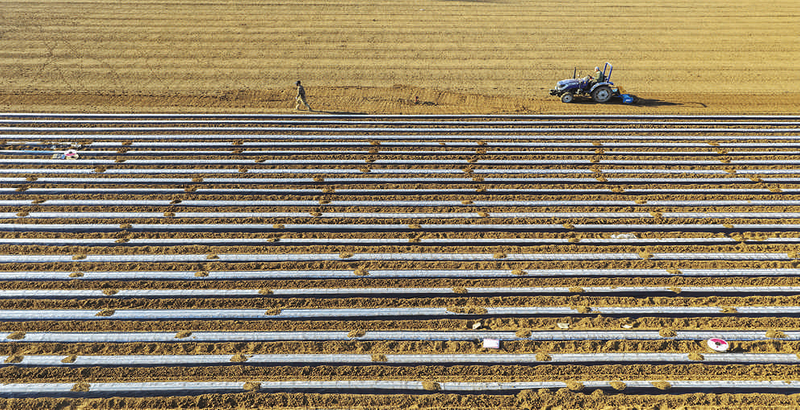 4月7日,河北省遵化市东新庄镇农民驾驶农机在田间耕作(无人机照片)。春风送暖,沃野披绿。各地抢抓农时,田间地头一派繁忙景象,勾勒出一幅幅生机盎然的春日农耕画卷。 新华社发 刘满仓 摄
